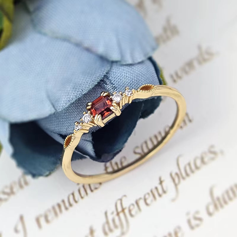Eleanor - Delicate Natural Princess Cut Garnet Ring
