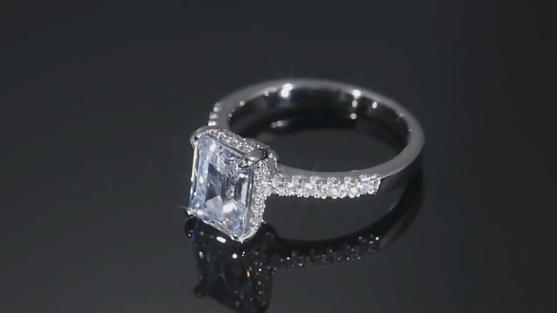 This hidden halo 3-carat conflict-free emerald cut ring exudes timeless elegance with its clean lines and ethical brilliance.