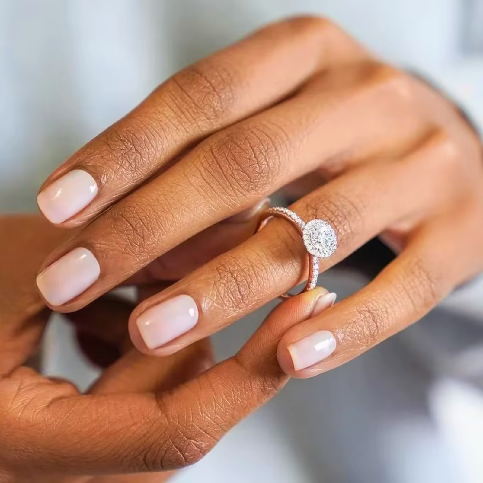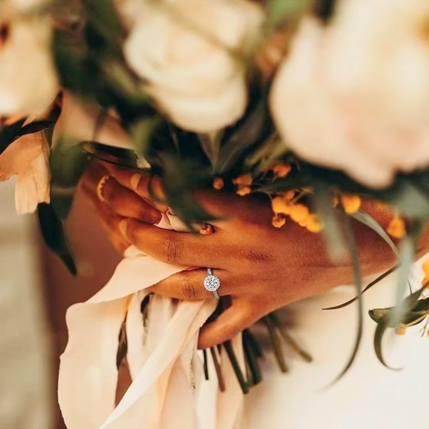 The Ruth showcases a 1.25CTRound Cut Simulated Diamond with a stunning halo set timelessly into a half eternity band. Both delicate and stunning, pair with your favorite stacking band or wear solo to compliment any moment.